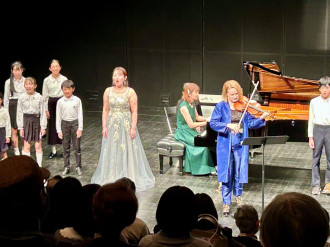 創作衣装で上演する音楽劇の原作・創作画は奥山永見古さんで、演出は小久保びんさん、振り付けはRumikoさん、演技指導はおとゆういちさん、ナレーションはおうえさちこさん。キャストは、持統役のRumikoさんをはじめ、Akihitoさん、Leiさん、俳優の小久保びんさん、ピアノ弾き語りの大田まりこさん、地元ラジオパーソナリティーの前川真吾さんらが舞台を盛り立て、樟蔭ダンスクラブ、PHるーぷよさだんも花を添える。