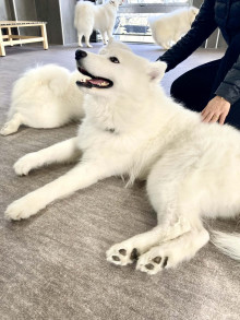 大型犬「サモエド」と触れ合える「サモエドカフェ アル」奈良店(奈良市橋本町 ミツハシビル 4階)が2月2日、オープン1周年を迎える。
